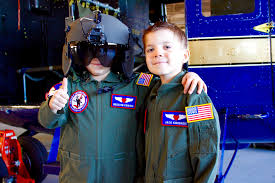 The boys were able to tour the cockpit of a Boeing C-40 Clipper, among other aircraft, had their names added to a helicopter and spent the day palling around with members of the 113th Wing Air National Guard.
